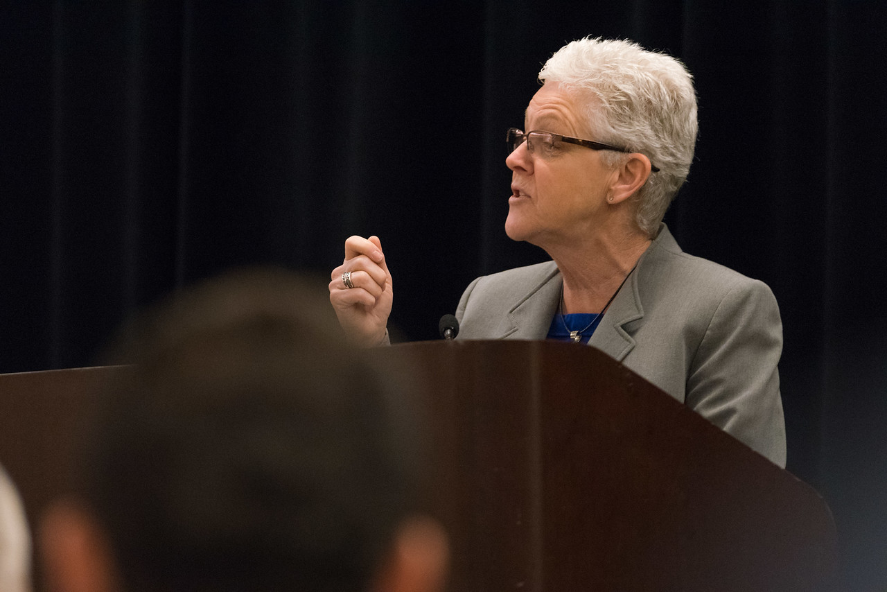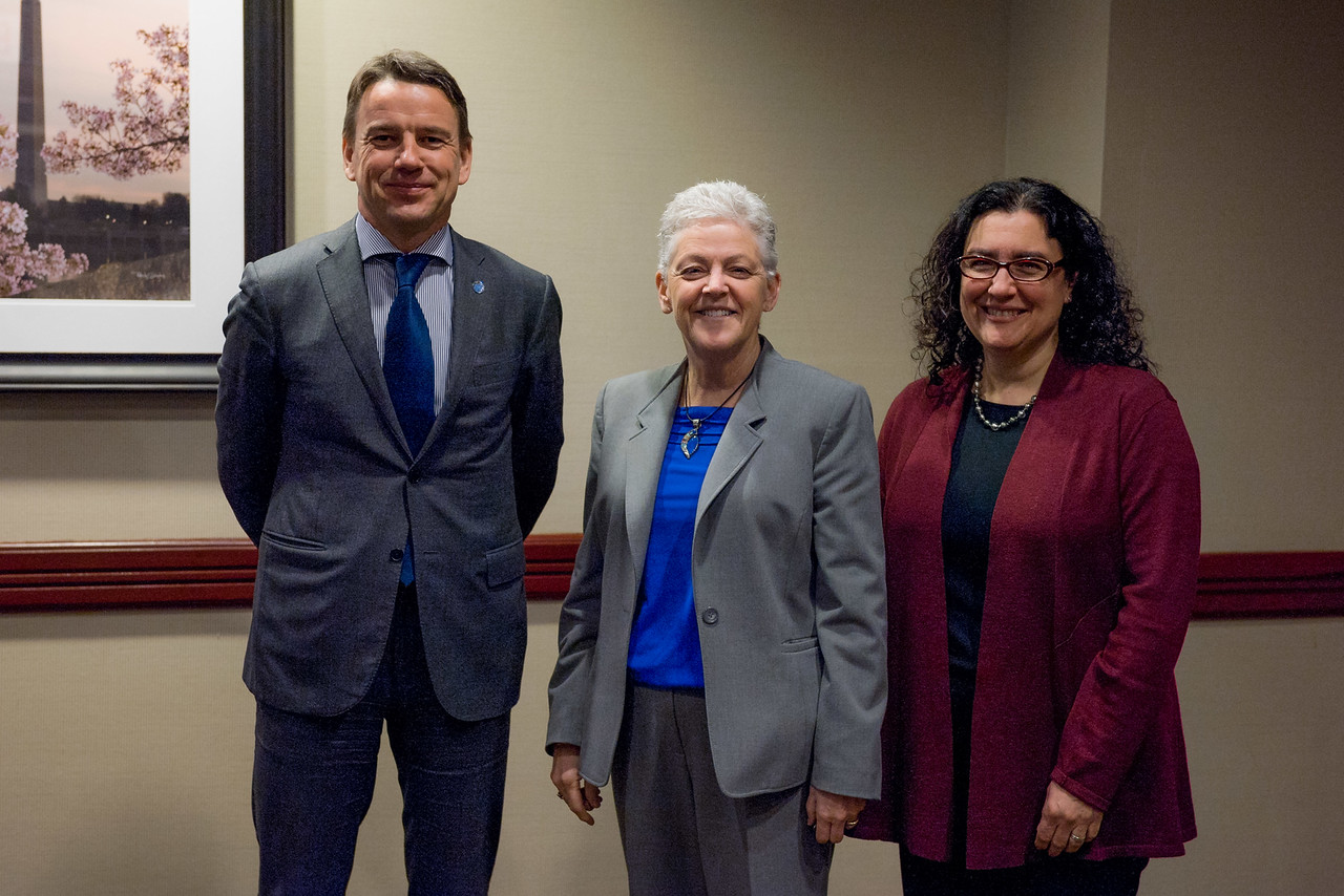 EPA Administrator Gina McCarthy with Rita Cerutti, Director of Multilateral Affairs in Environment and Climate Change Canada, and Christian Friis Bach, Executive Director of the United Nations Economic Commission for Europe, at the 2016 Global Methane Forum in Washington, DC, United States.