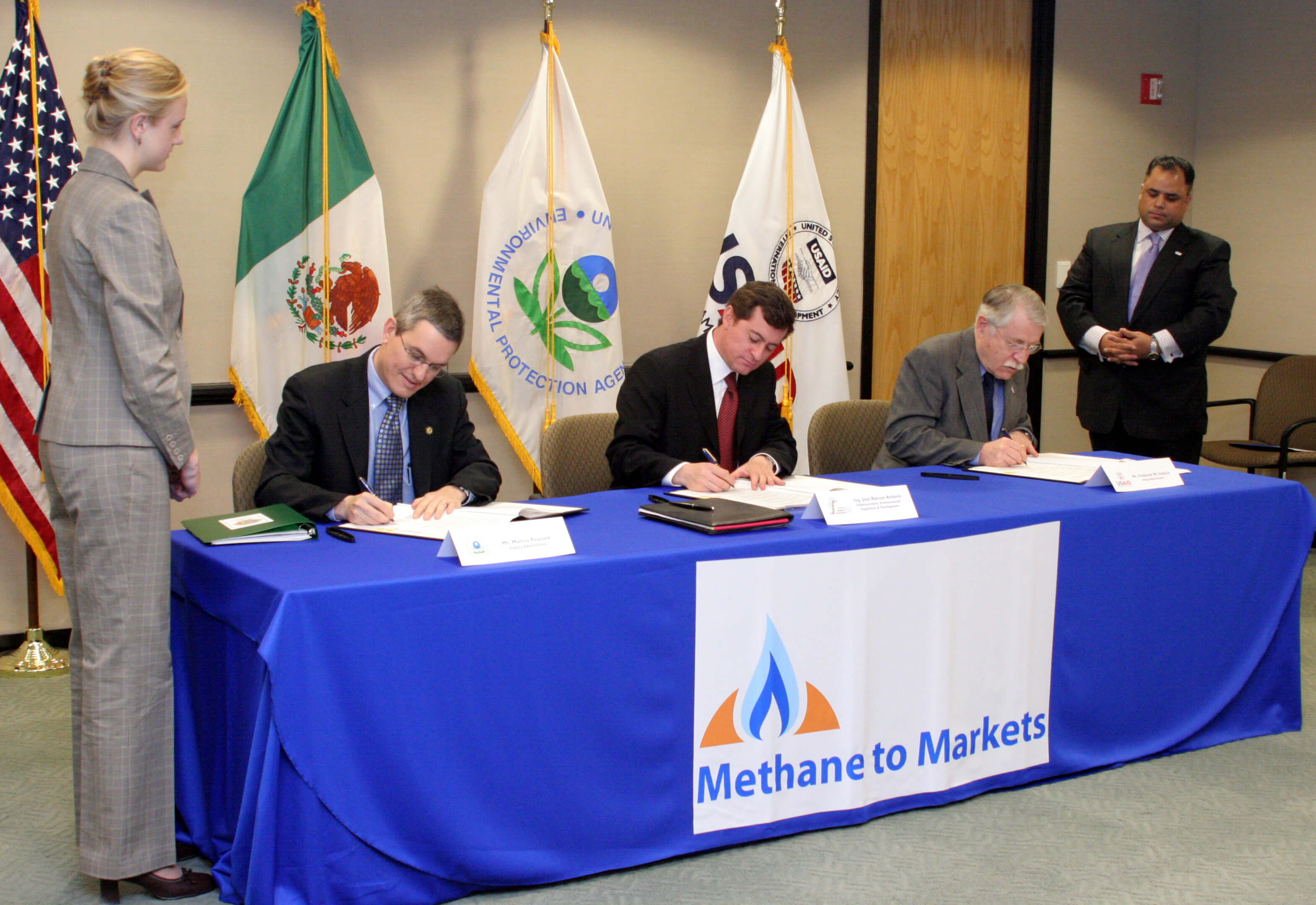 2005 Washington, D.C., United States MOU signing ceremony with the Secretariat of Environment and Natural Resources (SEMARNAT) in Mexico, U.S. EPA Deputy Administrator, and U.S. Agency for International Development Acting Administrator, 2005.