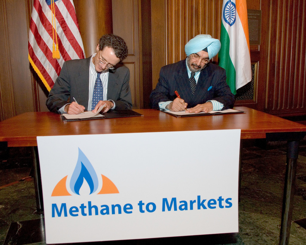 2007 Washington, D.C., United States U.S. and India officials signing the MOU between the U.S. and India in support of the Methane to Markets Partnership, 2007.